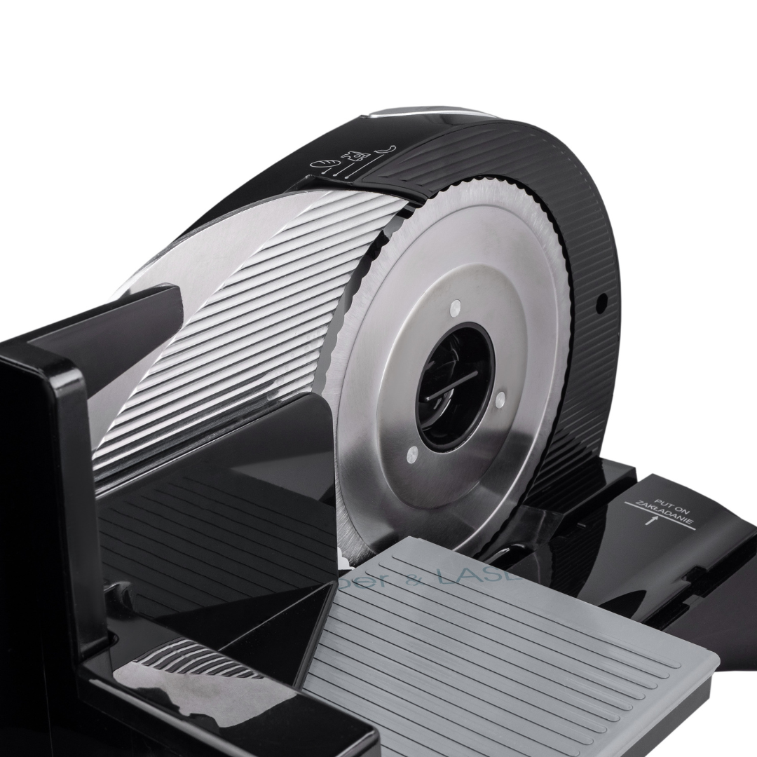 The Slicer 394.5 Kreska in a sleek black design ensures fast, precise, and even slicing of food. With 300W power and a stainless steel blade, it effortlessly handles meat, bread, cheese, and vegetables.