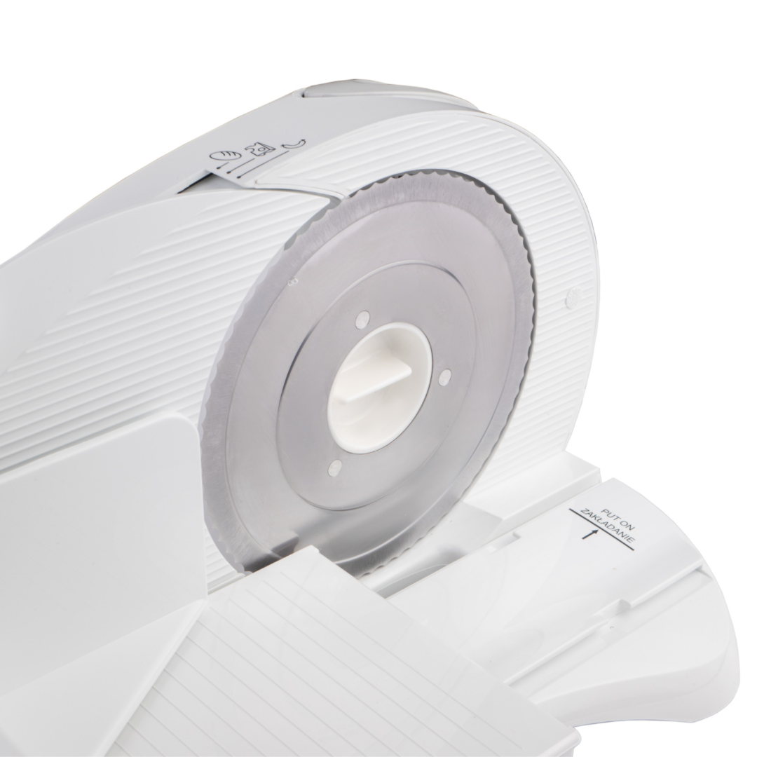 Слайсер 394.5 Kreska в классическом белом цвете — это современный кухонный прибор, который обеспечивает быстрое, точное и равномерное нарезание продуктов. Благодаря мощности 300 Вт и острым лезвиям из нержавеющей стали, он идеально справляется с мясом, хлебом, сыром и овощами.